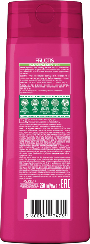Garnier Укрепляющий шампунь «Густые и роскошные» с экстрактом граната и молекулой Фибра-Цилан, для волос, лишенных густоты