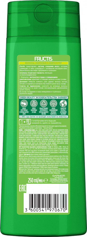 Garnier Укрепляющий шампунь «Огуречная Свежесть» для волос, склонных к жирности