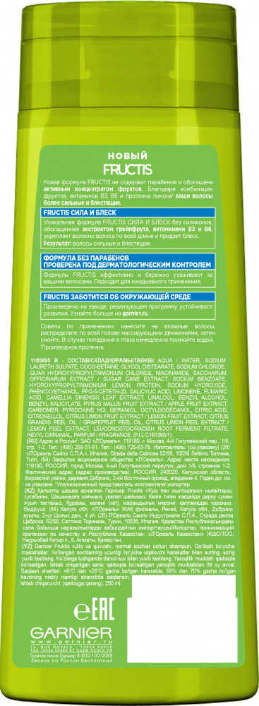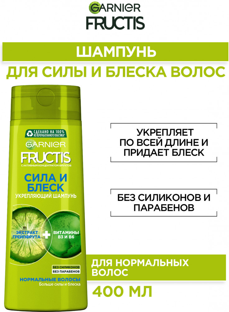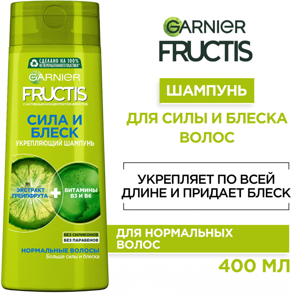 Garnier Шампунь для волос укрепляющий «Сила и Блеск» для нормальных волос с экстрактом грейпфрута и витаминами