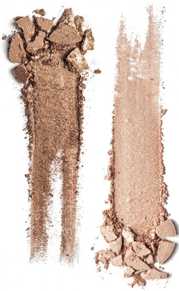 104 - два матовых оттенка, темный - это коричневый без излишней рыжины, он чуть пылит, в жизни выглядит холоднее, чем на фото, а у светлого бежево-розовый тон, он похож на пудру.