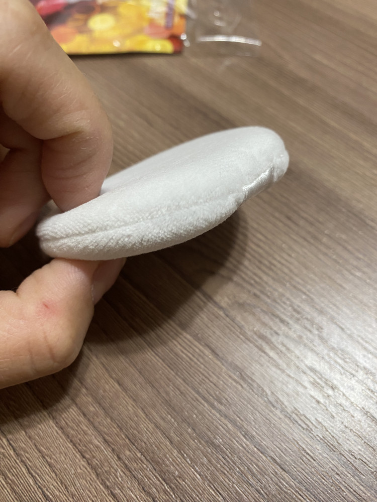 Отличная пуховка, удобная в нанесении пудры. Легко моется и сохраняет форму после помывки. В мою маленькую пудреницу не помещается, поэтому храню отдельно.