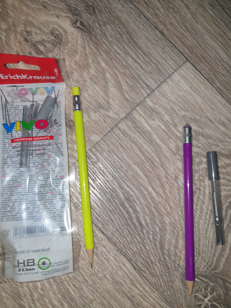 Карандаш хороший и удобный, есть ластик что тоже хорошо ;-; НО сначала я не поняла как вставить грифель...оказалось нужно было снять ластик (._.