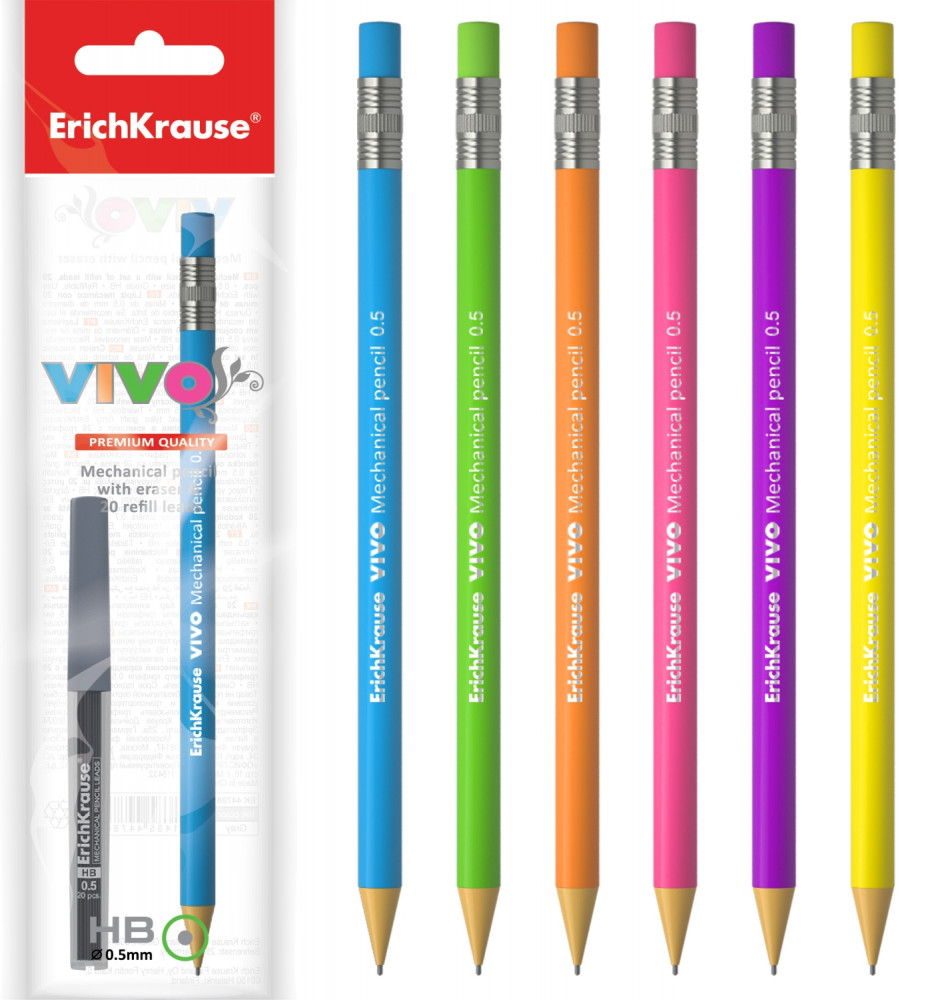 Erich Krause Карандаш механический, в наборе с грифелями (0.5 мм), цвет в ассортименте-30% +17 удобный корпус качественный ластик пишет мягко прочные стержни яркий цвет