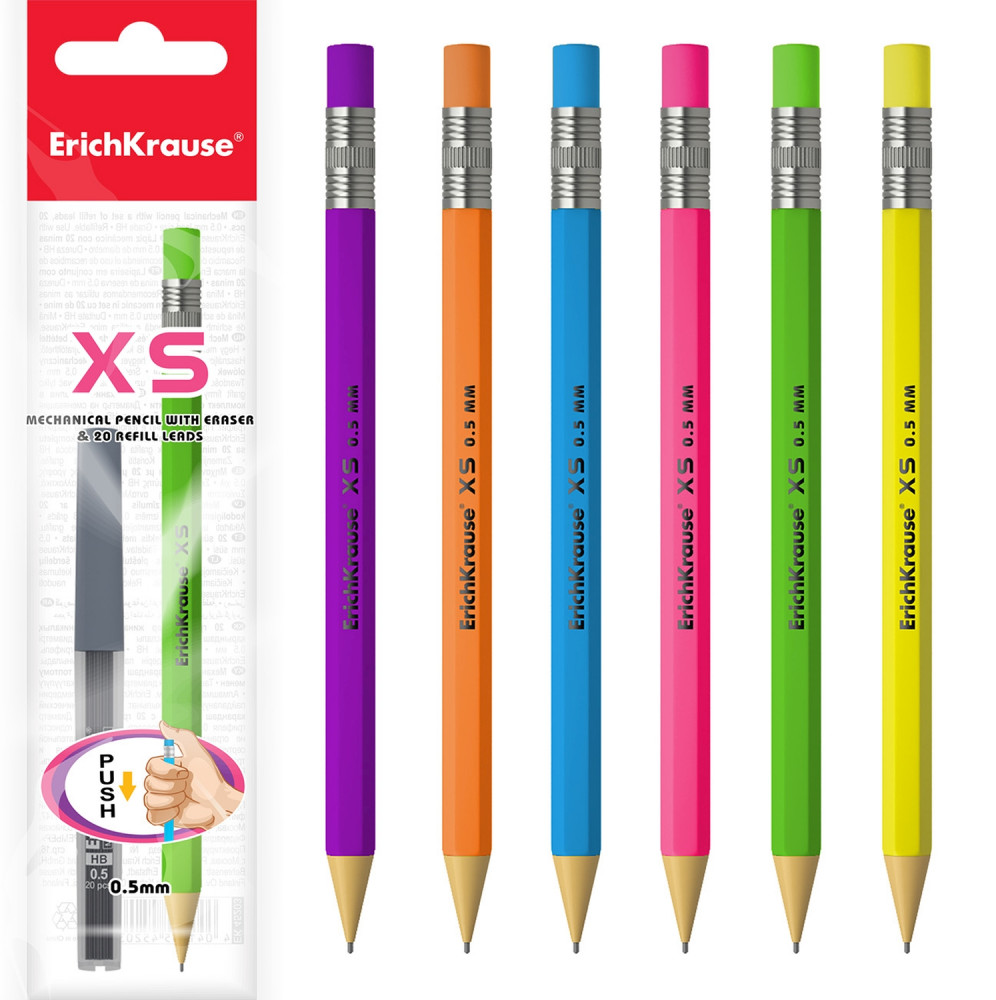 Erich Krause Карандаш механический «XS», в наборе с грифелями (0.5 мм), цвет в ассортименте+24 удобный маленький практичный неподходит детям