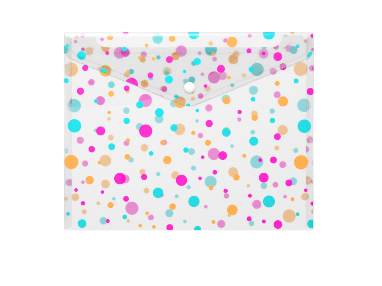 Великолепный дизайн разноцветных шаров, по всему папке-конверту А5+, на кнопке. Эта папка точно не затеряется. Всегда будет видна. Рекомендую. Спасибо, ФЛИП.кз.