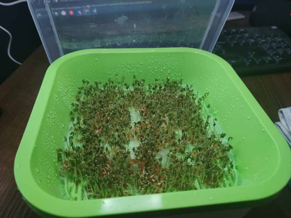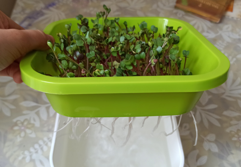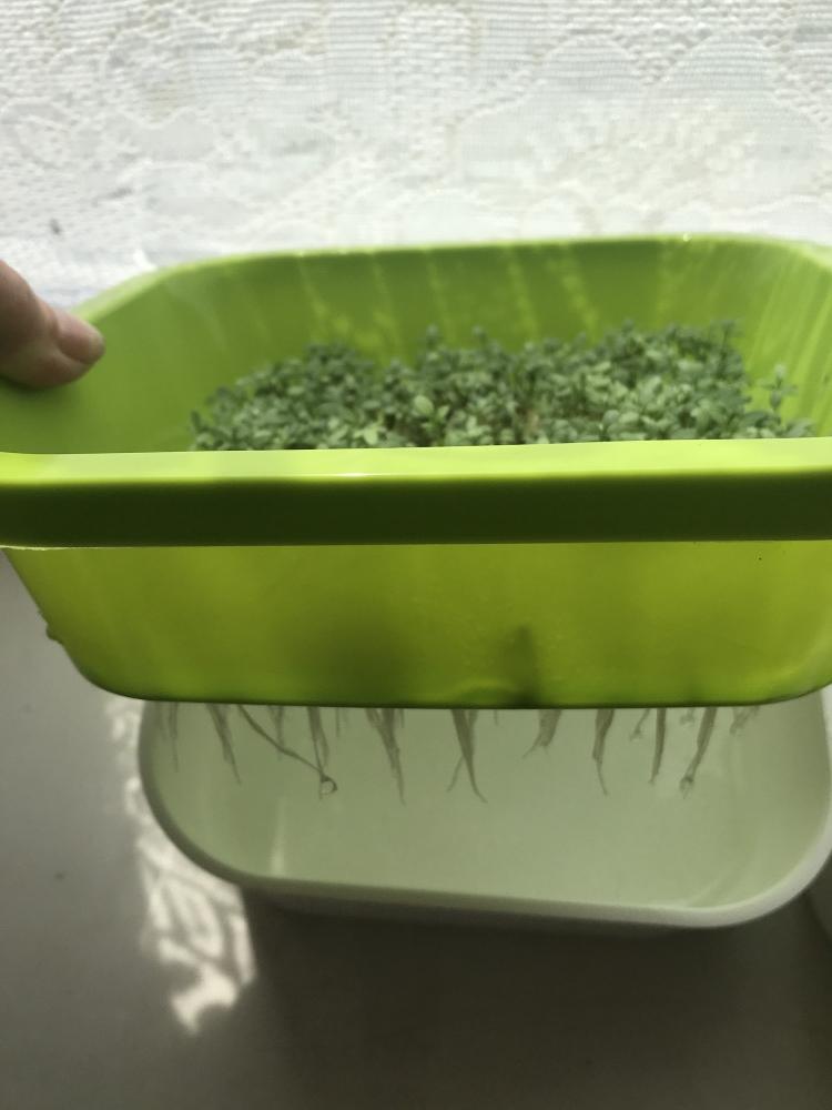 Очень понравился набор. В нем были семена кресс салата. На решетку постелила тонкую бумажную салфетку и семена не проскочили. Мне очень понравилось. Этим росткам 7 дней. Рекомендую для покупки, чтобы разнообразить свой рацион.