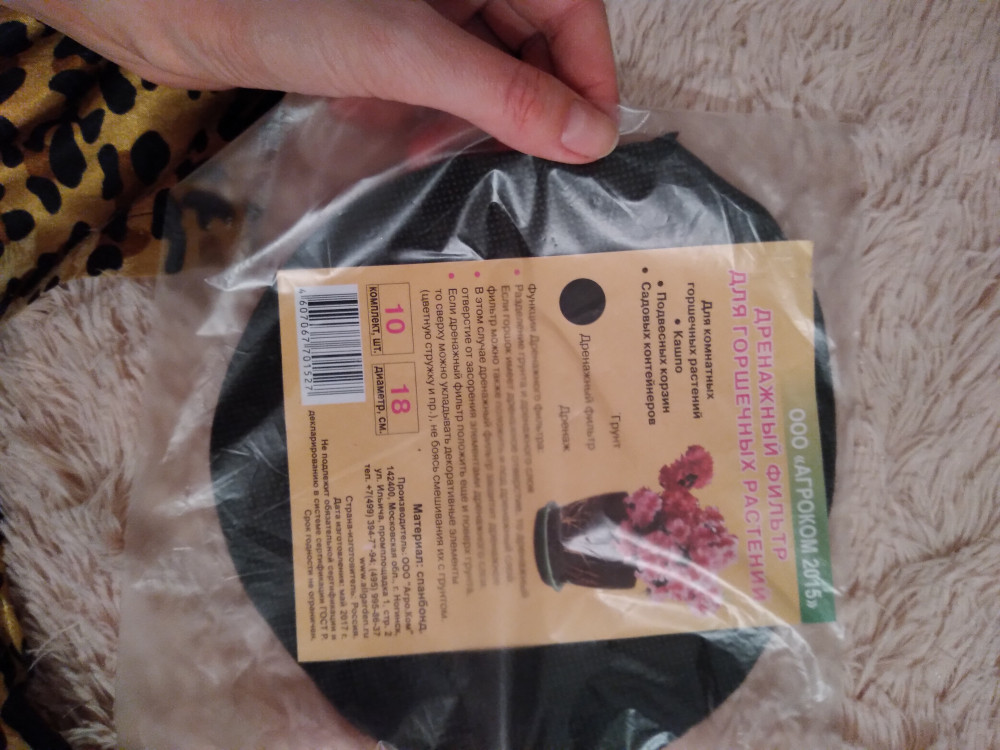 Отличный товар. Спасибо тем, кто придумал такой фильтр для почвы в цветочном горшке, и тем,кто произвел товар. Спасибо Флипу за доставку в целости и сохранности.