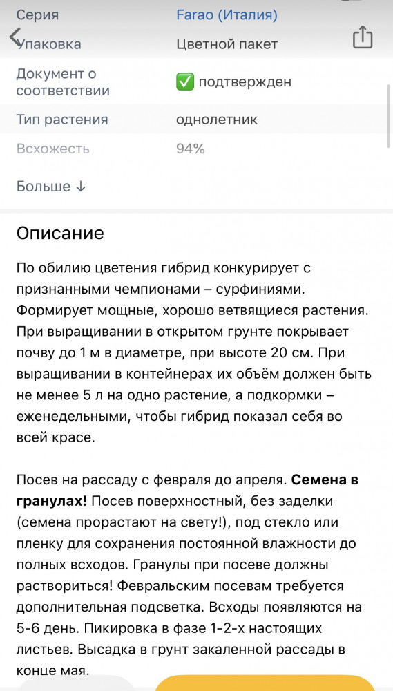 Прислали не тот товар, в описании было 20-25 см высота растения. А на упаковке 25-40см. Так же упаковки разные и описание тоже
