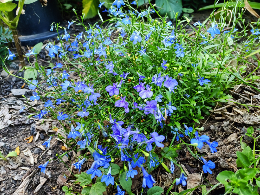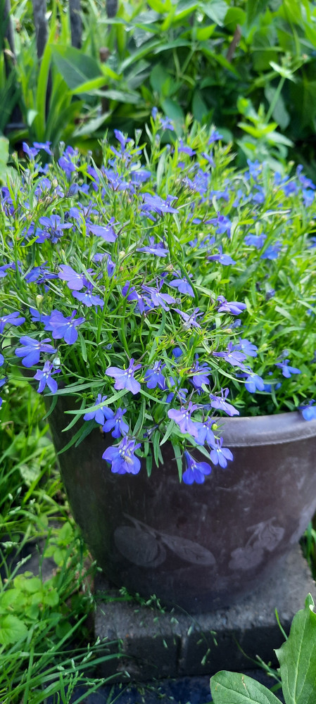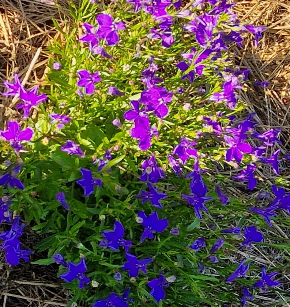 Нереально красивая лобелия. Цвет ярко синий, прям неоновый,. Куст компактный, шапочкой. Рассада взошла лесом, весна была холодная, поэтому высаживала в открытый грунт поздно, начала цвести уже в рассаде. Обязательно буду сажать именно этот сорт. Цвет меняется даже от того как тень падает на куст. На одном фото это отчётливо видно.