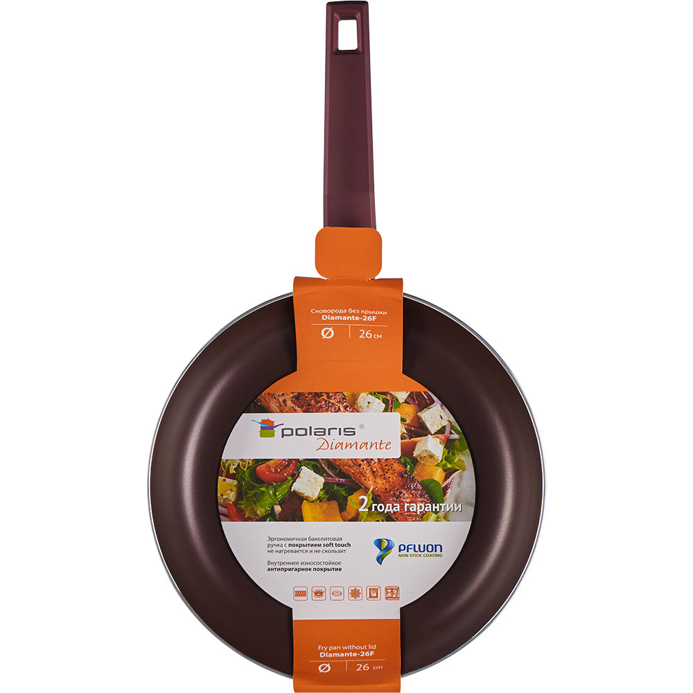 Polaris Сковорода «Diamante-26F» без крышки (диаметр 26 см)В данный момент этот товар отсутствует в продаже. Возможно, у нас найдется аналогичный или похожий товар здесь. Посуда изготовлена из высококачественного алюминия. Толщина алюминия 3 мм. Pfluon – 2-х слойное износостойкое антипригарное покрытие. Эргономичная бакелитовая ручка с покрытием Soft Touch не нагревается и не скользит. Подходит для всех типов плит, включая индукцию. |