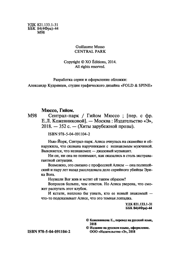 Сентрал-паркВ данный момент этот товар отсутствует в продаже. Возможно, у нас найдется аналогичный или похожий товар здесь. Серия: Хиты зарубежной прозы (обл) Нью-Йорк, Сентрал-парк. Алиса очнулась на скамейке и обнаружила, что скована наручниками с незнакомым мужчиной. Выясняется, что незнакомец — джазовый музыкант. Ни он, ни она не понимают, как оказались в столь экстравагантной ситуации. Возможно, это связано с профессией Алисы — она полицейский и пару лет назад расследовала дело серийного убийцы Эрика Вога. Неужели Вог жив и мстит ей таким образом? Вопросов больше, чем ответов. Но Алиса уверена, что сможет распутать этот клубок. И кстати, неплохо бы узнать, кто ее новый знакомый — что?то подсказывает Алисе, что это темная лошадка. |