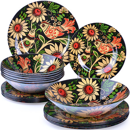 Loraine Набор стеклянной посуды (19 предметов)В данный момент этот товар отсутствует в продаже. Возможно, у нас найдется аналогичный или похожий товар здесь. Набор посуды выполнен из стекла и декорирован красочным цветочным рисунком. Данный набор предназначен для сервировки обеденного стола на 6 персон. Форма изделий круглая. Классический дизайн сочетается в нем с максимальной функциональностью. Такой набор послужит отличным подарком к любому празднику, а также добавит элегантности и уюта любому праздничному столу! Посуда обладает гладкой непористой поверхностью, не впитывает запахи, устойчива к перепадам температуры и легко моется. В набор входит 6 десертных тарелок, 6 глубоких тарелок, 6 больших тарелок и 1 большая салатница. Подходит для мытья в посудомоечной машине. |