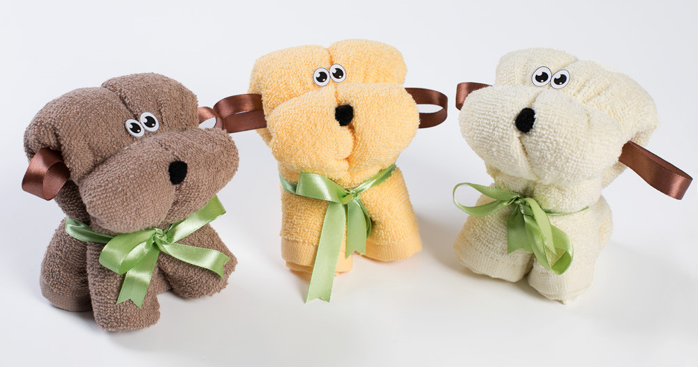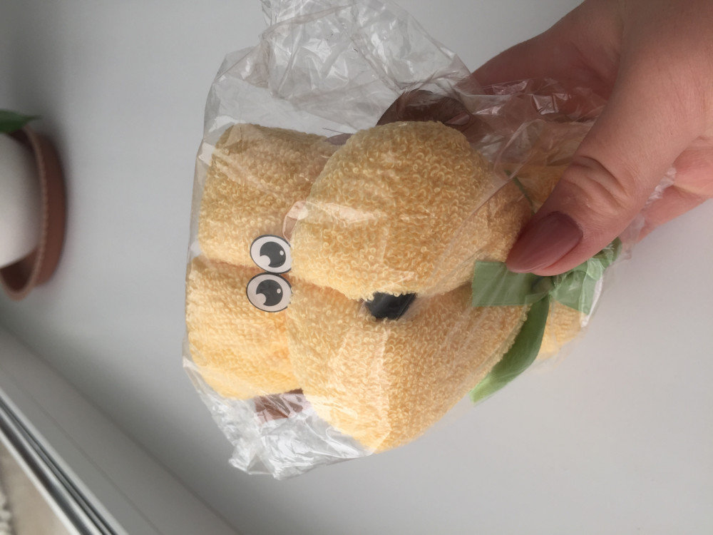 Полотенце брала на подарок, поэтому не разворачивала. А в свернутом виде-ну очень маленькая собачка.