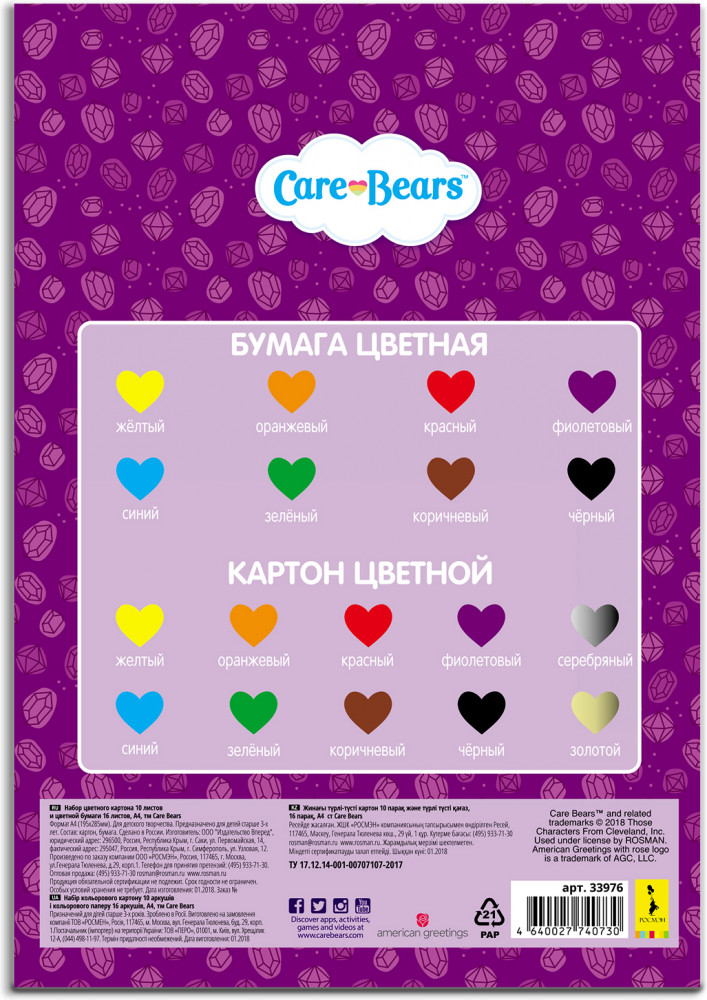 Набор для творчества «Заботливые мишки», картон (10 л, 10 цв) + цветная бумага (16 л, 8 цв)В данный момент этот товар отсутствует в продаже. Возможно, у нас найдется аналогичный или похожий товар здесь. Серия: Заботливые мишки Набор для детского творчества "Заботливые мишки" формата А4 оптимально подходит для изготовления поделок дома, в детском саду и начальной школе. В упаковке 10 листов цветного мелованного картона, обладающего увеличенной плотностью 230 г/м2, и 16 листов (8 цветов) бумаги, которая имеет оптимальную плотность 45 г/м2, без усилий режется, ровно сгибается и хорошо приклеивается. |