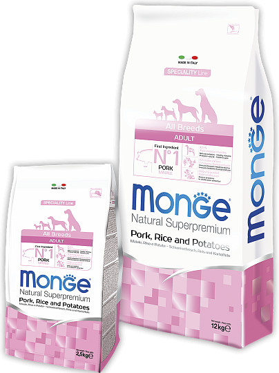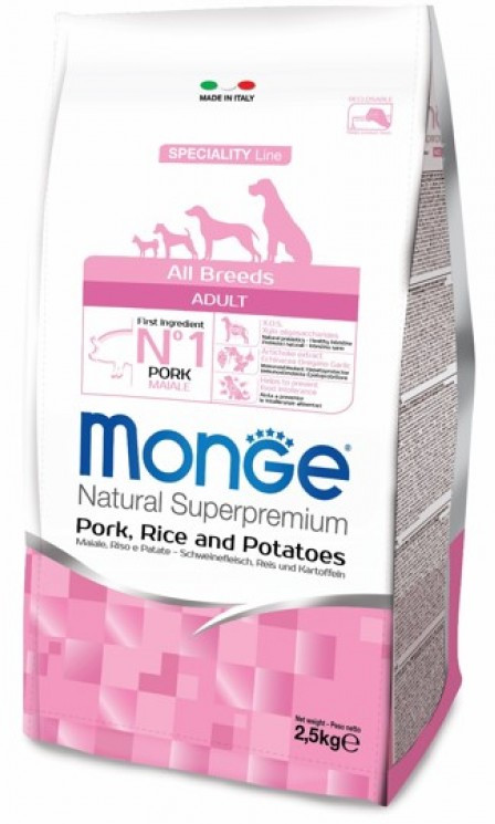 | Monge Корм для взрослых собак всех пород со свининой, рисом и картофелем (2,5 кг)