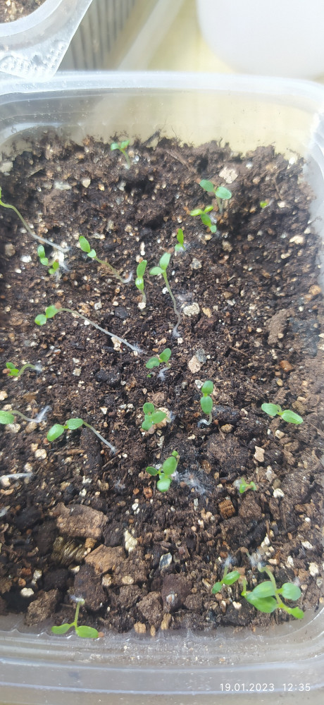 Посеяла 12.01, взошли 15.01, всходов много, процентов70-80. Сняла на снег, накрыло прозрачной крышкой, сразу поставила под лампу.