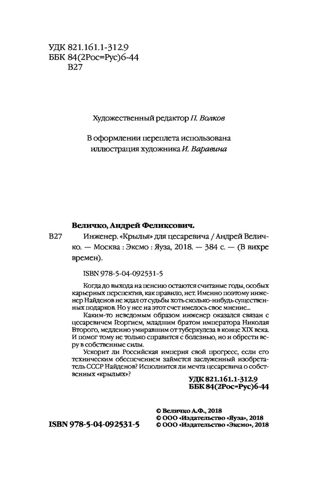 Инженер. «Крылья» для цесаревичаВ данный момент этот товар отсутствует в продаже. Возможно, у нас найдется аналогичный или похожий товар здесь. Серия: В вихре времен Когда до выхода на пенсию остаются считаные годы, особых карьерных перспектив, как правило, нет. Именно поэтому инженер Найденов не ждал от судьбы хоть сколько-нибудь существенных подарков. Но у нее на этот счет имелось свое мнение... Каким-то неведомым образом инженер оказался связан с цесаревичем Георгием, младшим братом императора Николая Второго, медленно умиравшим от туберкулеза в конце XIX века. И помог тому не только справится с болезнью, но и обрести веру в собственные силы. Ускорит ли Российская империя свой прогресс, если его техническим обеспечением займется заслуженный изобретатель СССР Найденов? Исполнится ли мечта цесаревича о собственных «крыльях»? |