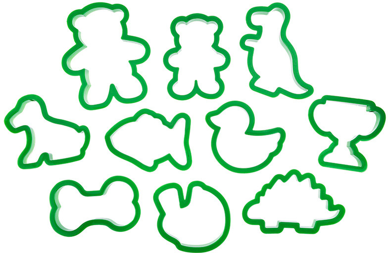 материал: пластик, а не силикон как написано в описании. вырезают хорошо. формочки каждая 8- 10 см. Фото соответствует набору.