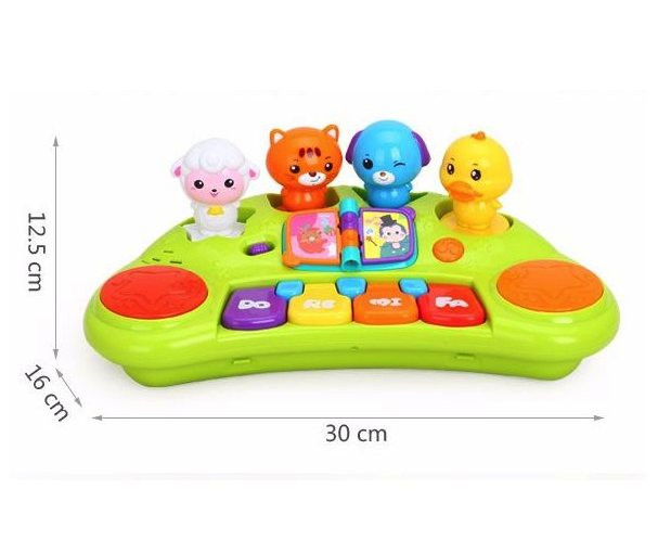 Huile Toys Игрушка «Пианино со зверятами»В данный момент этот товар отсутствует в продаже. Возможно, у нас найдется аналогичный или похожий товар здесь. Развивающая игрушка познакомит Вашего малыша с миром весёлых музыкальных мелодий. Нажимая на яркие разноцветные клавиши, ребёнок услышит звуки разной тональности. Кроме того с помощью кнопок с изображением музыкальных инструментов можно услышать воспроизводимые ими звуки. А слоник на каталке, забавный жёлтый мишка, качающийся на розовых качелях, бегемот, занимающийся на турнике, жираф и зебра на каруселях поднимут крохе настроение. |