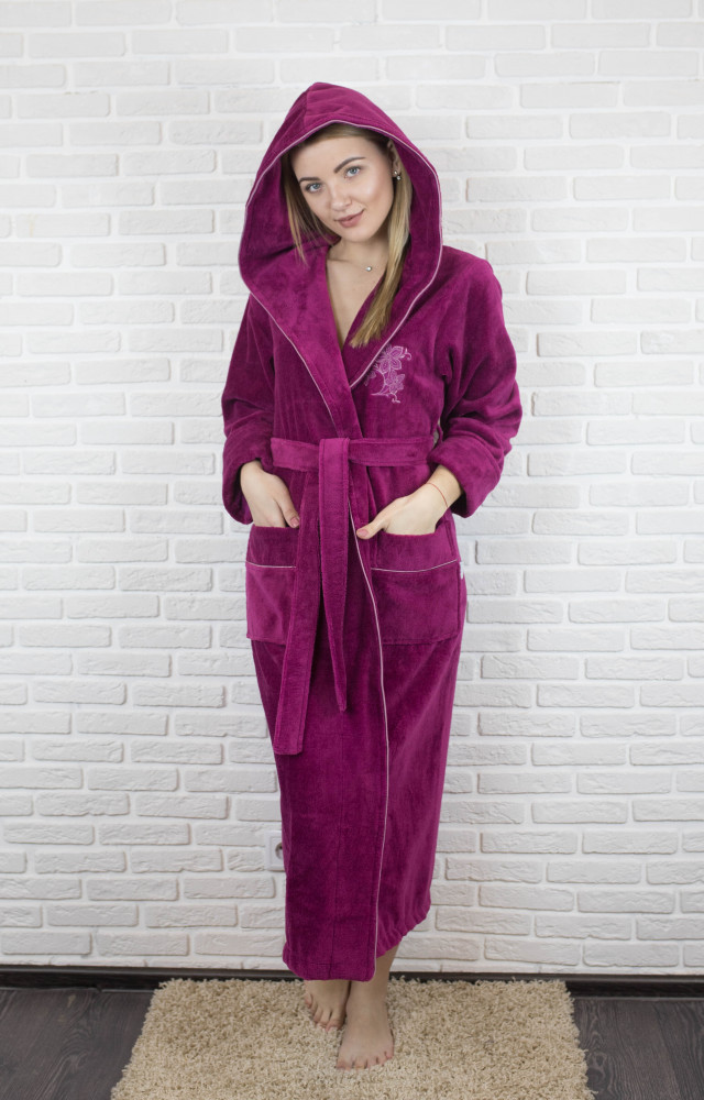 Роскошный длинный женский халат из уникальной мягкой ткани трига-бамбук. Представительницы прекрасного пола обязательно по достоинству оценят дизайн и крой коллекции, который придает его обладательнице грациозный силуэт и величественный вид. Богатство фактуры создает сочетание бархатной основы с декоративной отделкой, выполненные в одном цветовом тоне. Дополнительную легкость модели придает, казалось бы, обычная деталь – пояс и капюшон. Цветовая гамма выполнена в самых модных и востребованных цветах! А широкий размерной ряд позволит любой представительнице прекрасного пола подобрать свой размер и почувствовать себя настоящей королевой!