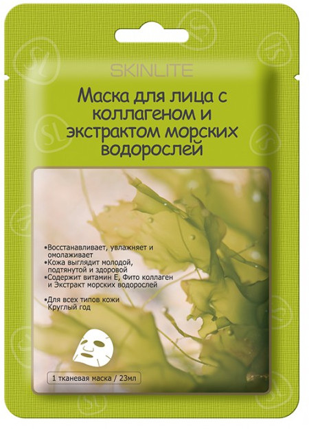 Skinlite Маска для лица тканевая с коллагеном и экстрактом морских водорослей