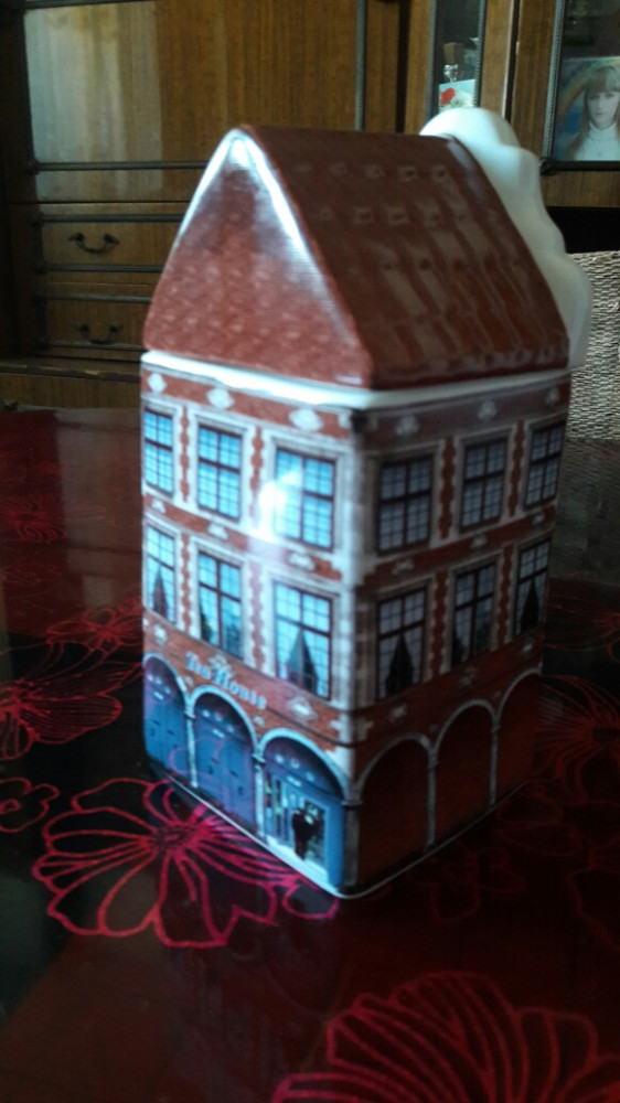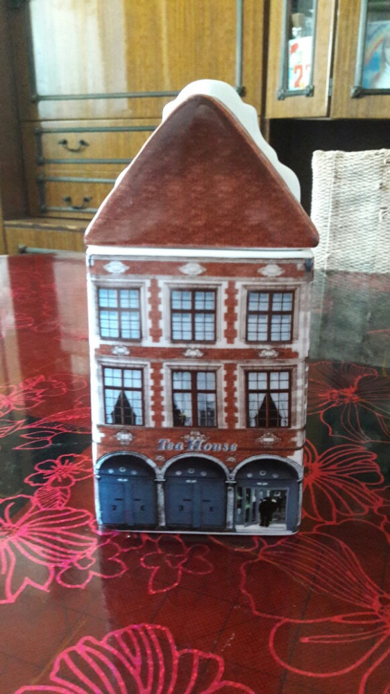 Домик очень понравился, вмещает одну пачку чая, 25 пакетиков примерно. Качество фарфора и рисунка отличное. Красивый декор для кухни и радующая глаз милота. Всем советую!