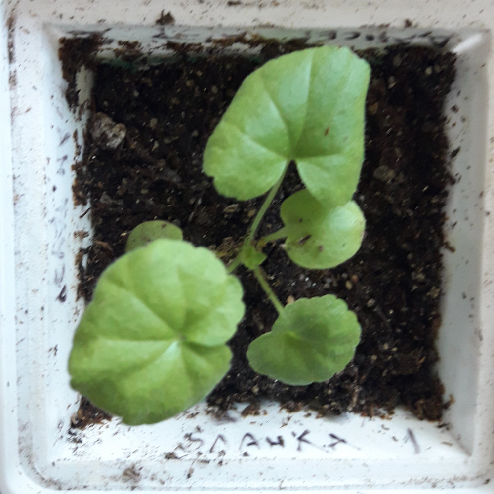 Всхожесть не очень. Из 4 семян взошло сначала одно, крепкое растение, потом еще одно хиленькое. Всё. Хиленькое даже семядолевые листочки не смогло раскрыть полностью, так и погибло, корешок не развился совсем. На фото то самое первое крепкое растение.