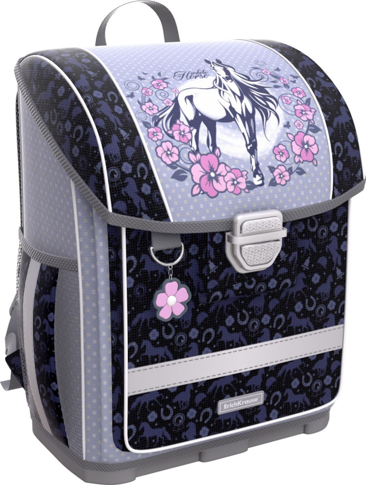 Ранец изготовлен из износо- и морозостойкого водоотталкивающего 100%-го полиэстера. Литое дно, выполненное из ударопрочного пластика, интегрированное в общий каркас ранца, служит для обеспечения дополнительной устойчивости ранца и защиты от загрязнений и влаги. Внутри три отделения: вместительное основное с фиксатором для учебников, а также два дополнительных с мини органайзером. Снаружи два боковых кармана на резинке. Светоотражающие элементы интегрированы в конструкцию по всему периметру, включая замок из поликарбоната повышенной прочности.