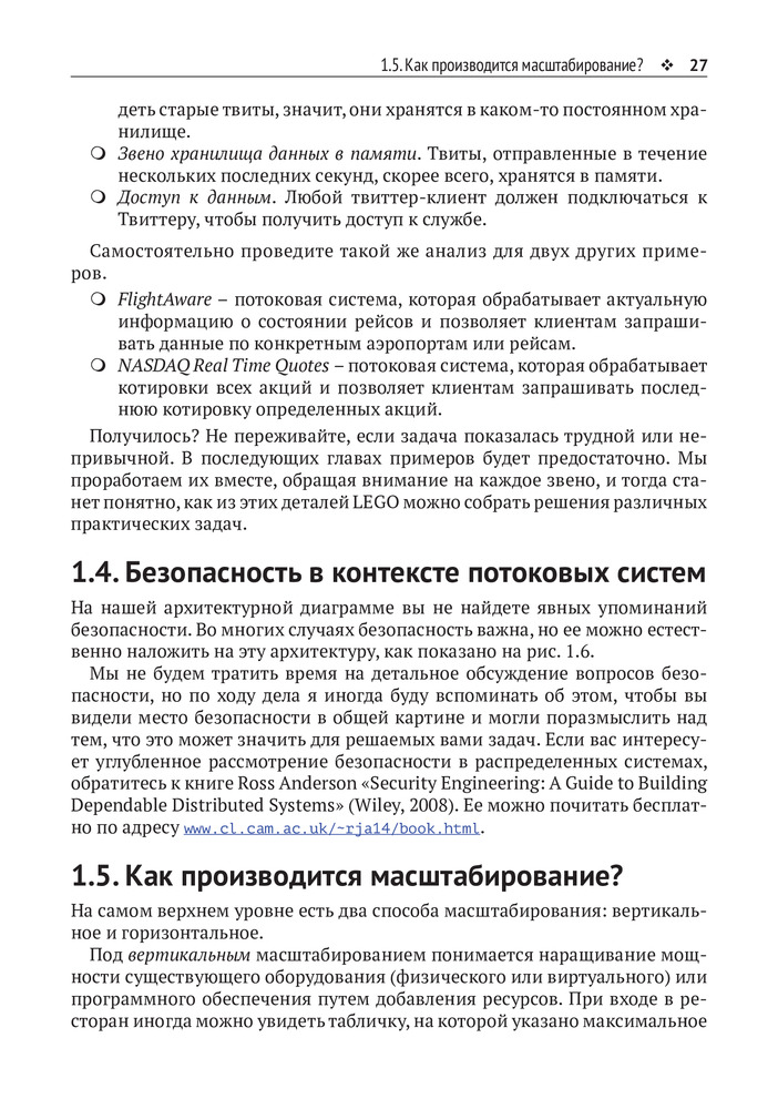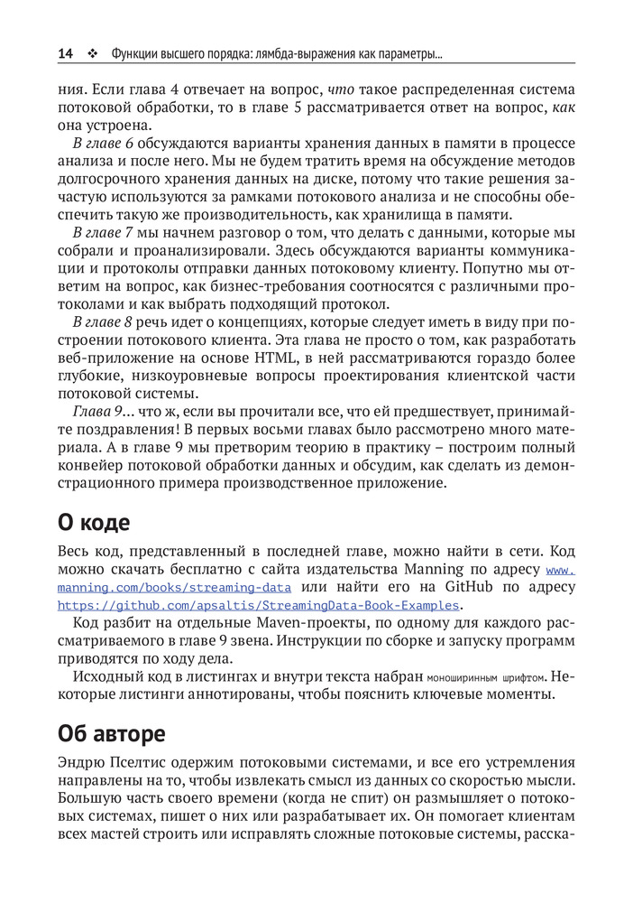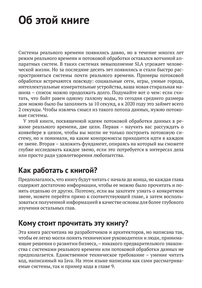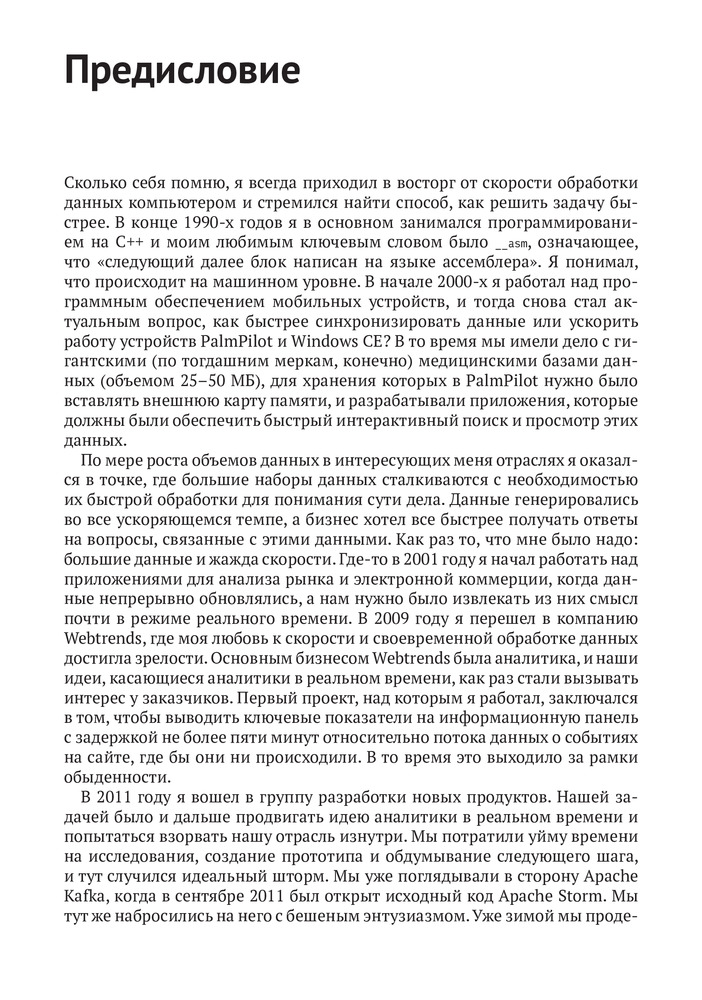 💳 Оплатить за товар можно при получении 🇰🇿 Есть бесплатная доставка по Казахстану от 1 дня 🎁 Копите бонусы с каждой покупки Эта насыщенная идеями книга научит вас думать об эффективном взаимодействии с быстрыми потоками данных. В ней выдержан идеальный баланс между широкой картиной и деталями реализации. На содержательных примерах и практических задачах вы узнаете о проектировании приложений, которые читают, анализируют, разделяют и сохраняют потоковые данные. Попутно вы поймете, какую роль играют такие технологии, как Spark, Storm, Kafka, Flink, RabbitMQ и другие. |