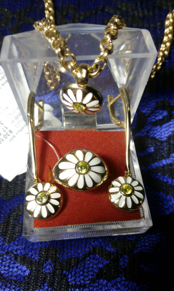 SOKOLOV Кольцо из золочёного серебра с эмалью и фианитом «Ромашки»