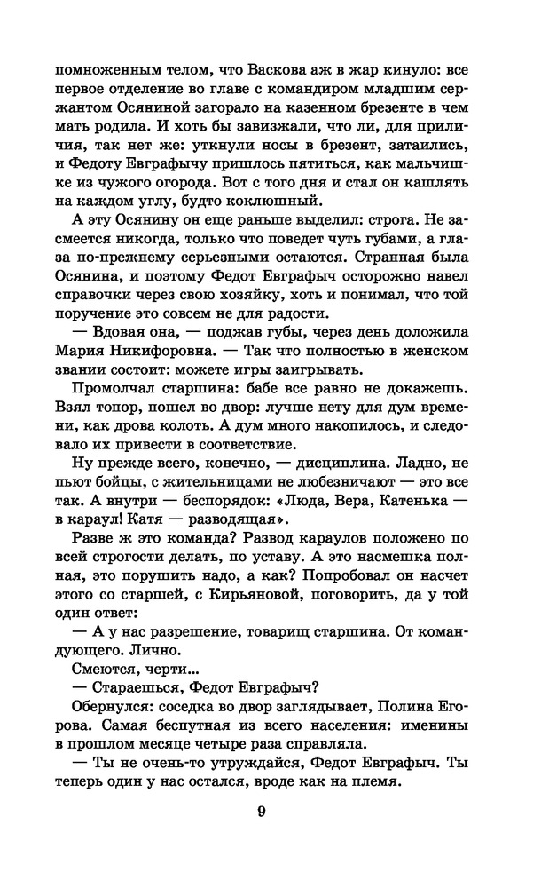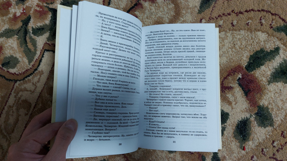 читаю пока "а зори здесь тихие" – слог очень интересный, погружает в атмосферу, мышление героев соответствует эпохе.