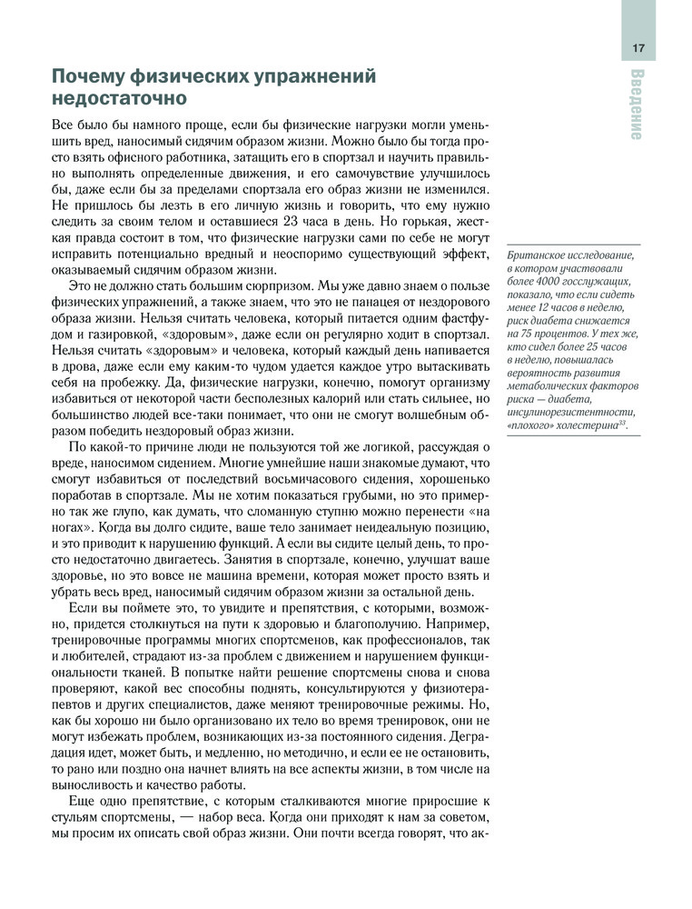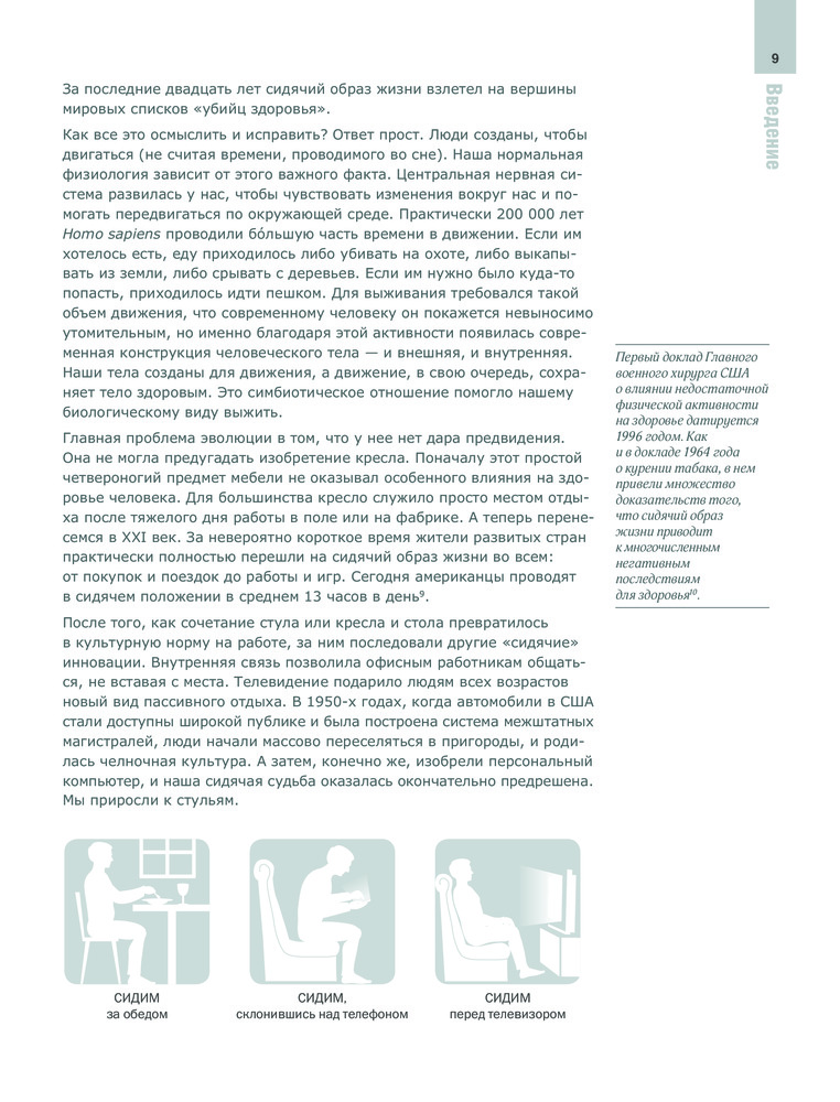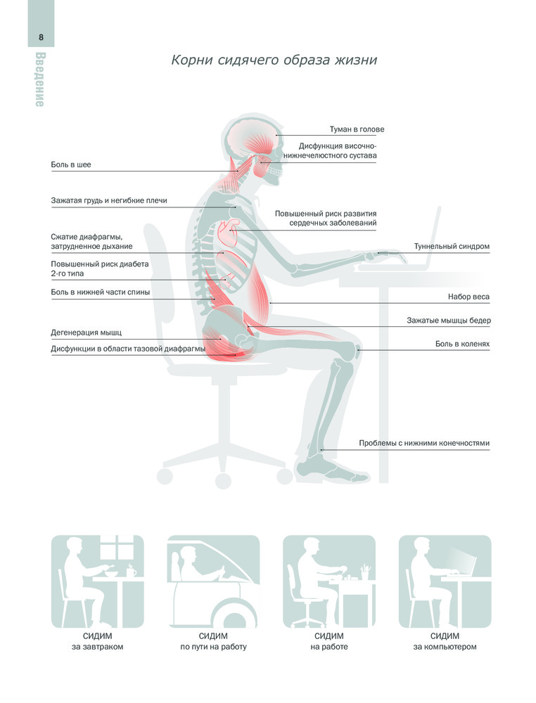 Приросший к стулу, ВСТАНЬ. Энциклопедия упражнений для спины и суставовКелли Старретт, Глен Кордоза, Джульетта Старретт В данный момент этот товар отсутствует в продаже. Возможно, у нас найдется аналогичный или похожий товар здесь. Серия: Body & mind. Книги, которые меняют тебя и твое тело Оказывается сидячий образ жизни — это такой же профессиональный риск как поднятие тяжестей и работа ночью. Действительность такова — стулья буквально сокращают нашу жизнь, медленно убивая нас. В своей новаторской книге, знаменитый физиотерапевт, автор бестселлеров, тренер мирового уровня — доктор Келли Старретт — представляет подробный план битвы во имя того, чтобы весь мир мог стоять и не ориентироваться на тех, кто уже прирос к своему стулу. «Приросший к стулу, ВСТАНЬ! Энциклопедия упражнений для спины и суставов» дает креативные решения: как меньше сидеть на одном месте и как преобразовать ваш рабочий стол в динамический инструмент, который улучшит жизнь. Вы научитесь: · Выявлять и фиксировать неправильные положения тела, когда вы сидите, стоите или двигаетесь; · Предотвращать, лечить и устранять боли в пояснице, шее, плечах, запястьях и коленях; · Избегать повторяющихся стрессовых травм (таких как синдром запястного туннеля и тендинит); · Стабилизировать позвоночник, бедра и плечи в правильном положении · Ходить, наклоняться и приседать с дополнительной нагрузкой; · Двигаться активнее, благодаря 14 предписаниям мобильности. Если ваша цель — максимально усилить производительность на рабочем месте и вне его, похудеть или просто начать жить без боли, книга «Приросший к стулу, ВСТАНЬ» поможет в воплощении ваших желаний. Это революционное лекарство от «смерти-за-столом» для всех, приросших к стулу. |