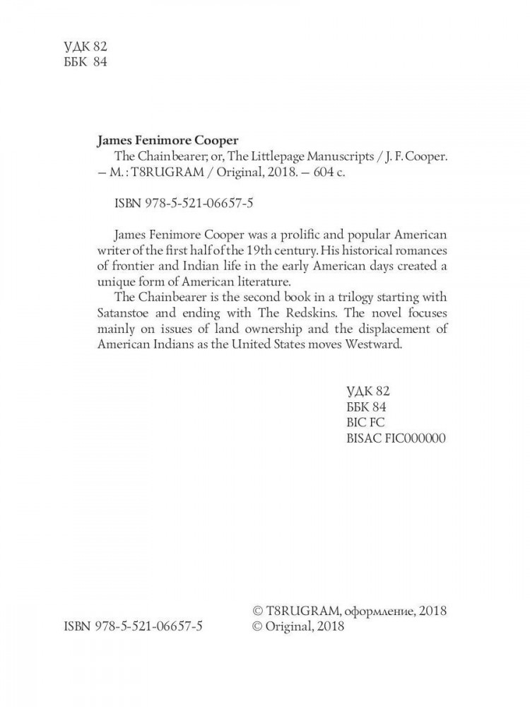 💳 Оплатить за товар можно при получении 🇰🇿 Есть бесплатная доставка по Казахстану от 1 дня 🎁 Копите бонусы с каждой покупки Серия: Original James Fenimore Cooper was a prolific and popular American writer of the first half of the 19th century. His historical romances of frontier and Indian life in the early American days created a unique form of American literature. The Chainbearer is the second book in a trilogy starting with Satanstoe and ending with The Redskins. The novel focuses mainly on issues of land ownership and the displacement of American Indians as the United States moves Westward. |