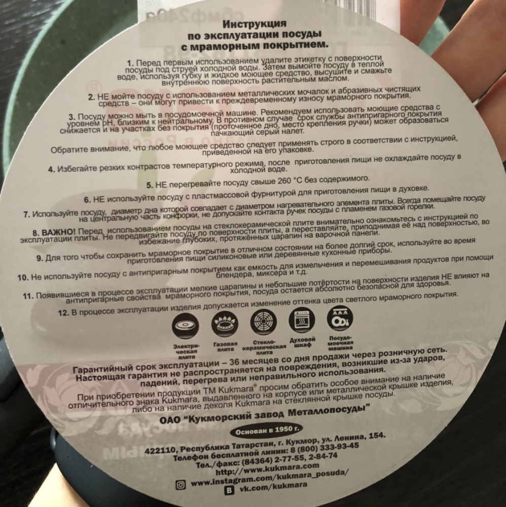 • посуда с 5-ти слойным антипригарным мраморным покрытием нового поколения, усиленное минеральными керамическими частицами;