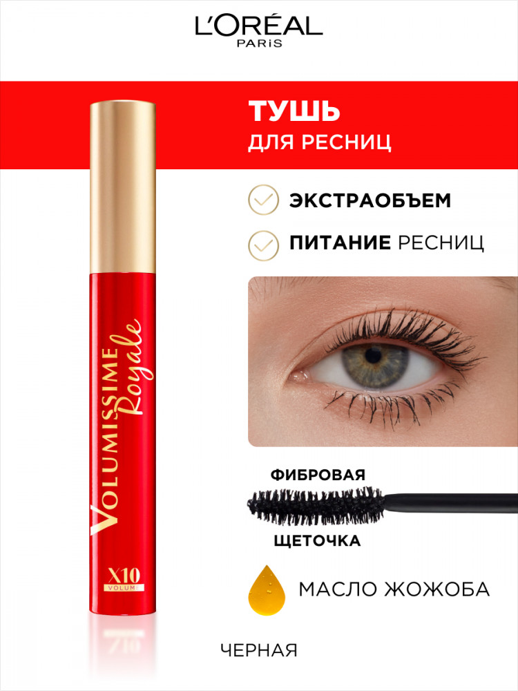 L'Oreal Paris Тушь для ресниц «Volumissime Royale» для удлинения и разделения, черная