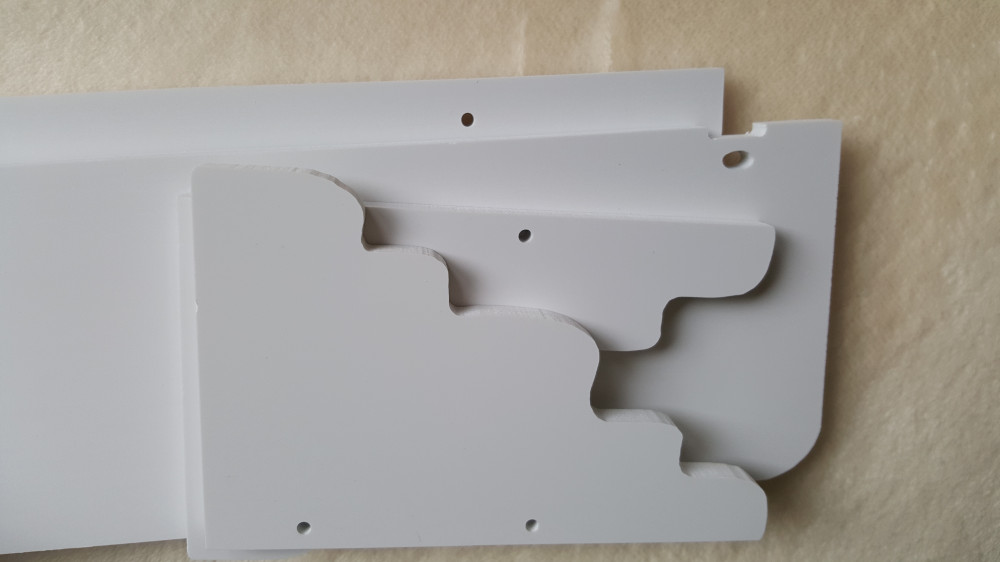Сама идея и дизайн этой полочки мне очень понравились, но производитель явно слукавил, написав, что полка сделана из МДФ. Насколько мне известно, МДФ - это плиты, изготовленные из мелких древесных опилок. Но полочка изготовлена из какого-то вида пластика. Она очень-очень легкая, на срезе видны мелкие крошки материала. Плюс ко всему, к ней примагничивается волос, шерсть. С деревянными изделиями такого не случается. Так же материал на срезе очень мягкий, на нем легко остаются следы от небольшого надавливания ногтем. Очень жаль, что так получилось. Ведь была бы данная полочка действительно из МДФ - она смотрелась в интерьере бы очень красиво! А данный материал, к сожалению, выглядит дешево...