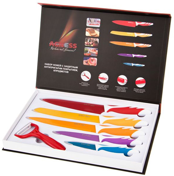Набор ножей значительно сэкономит ваше время на готовку и поможет легко нарезать любой вид продуктов, вам придется прикладывать минимально сил. Ручки эргономические и приятные на ощупь, не сдавливают и не натирают. Они предназначены для разных целей, что помогает найти индивидуальный подход к каждой категории пищи.