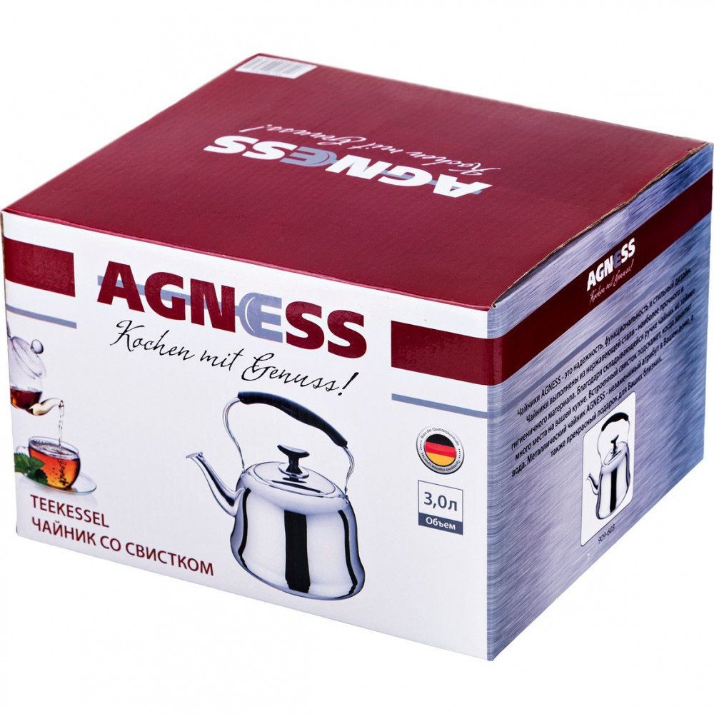 Agness Чайник со встроенным свистком (3 л)-30% +212 дизайн не свистит не сильно свистит
