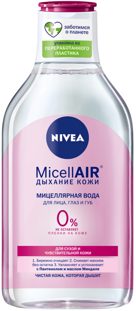 NIVEA Мицеллярная вода для лица смягчающая-20% +19 снимает макияж удаляет тушь не липкая мягкое очищение жжение