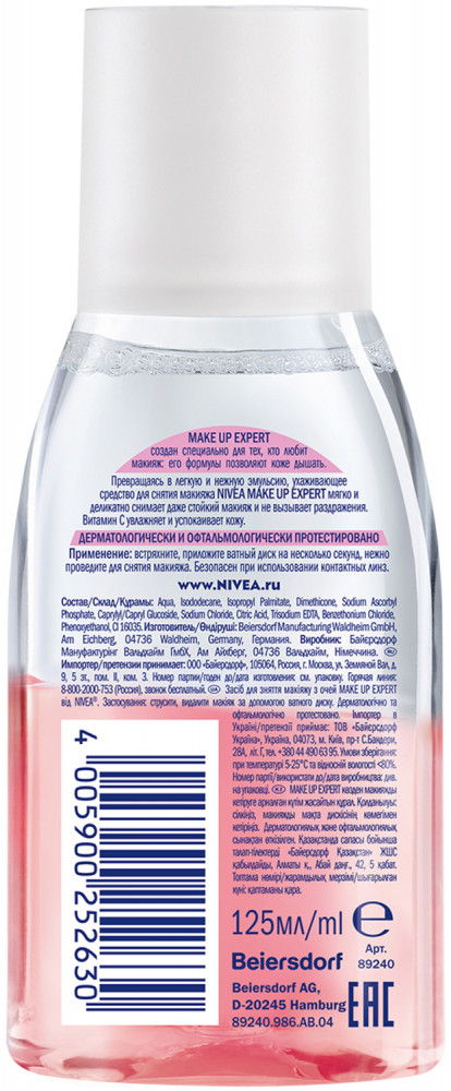 NIVEA Средство для снятия макияжа ухаживающееВ данный момент этот товар отсутствует в продаже. Возможно, у нас найдется аналогичный или похожий товар здесь. Серия: Make-up Expert При очищении ватным диском важно совместить эффективное удаление макияжа с бережным уходом за кожей вокруг глаз и ресницами. Многие девушки отмечают, что после снятия макияжа на ватном диске могут оставаться реснички. Ухаживающее средство для снятия макияжа с глаз от NIVEA действует сразу в двух направлениях: прозрачная масляная фаза легко удаляет даже водостойкий макияж без трения, а ухаживающая цветная фаза с витамином С заботится о коже вокруг глаз и ресницах, придает коже мягкость и нежность, дарит ощущение комфорта. Благодаря этому с каждым использованием на ватном диске остается меньше ресниц. |