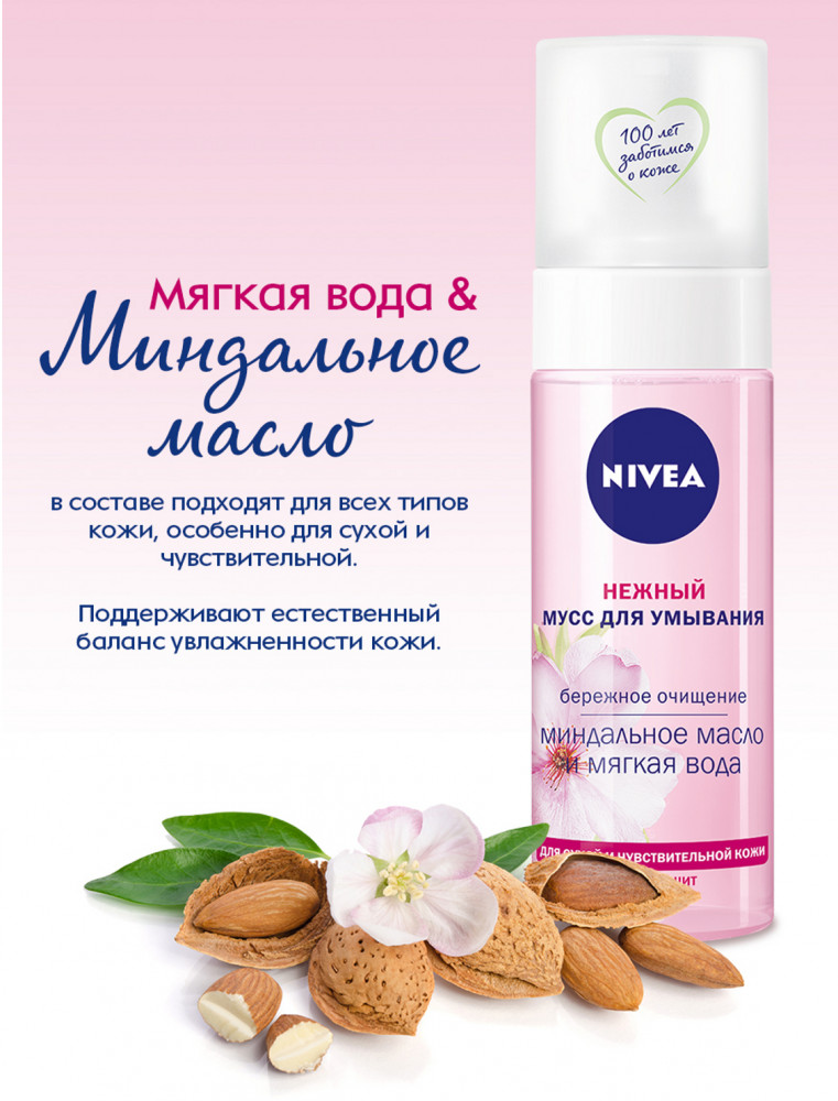 NIVEA Мусс для умывания «Нежный»-20% +77 нежная пенка хорошо очищает не сушит кожу