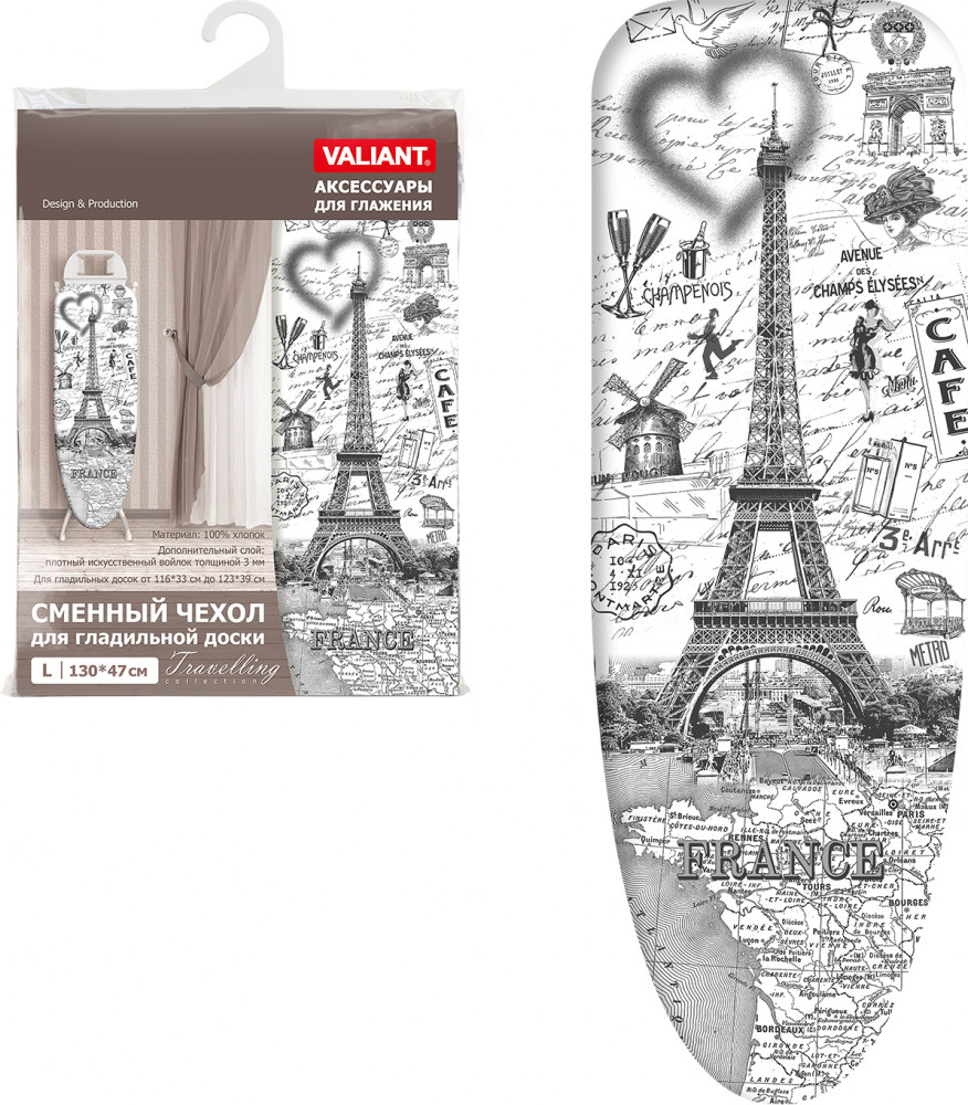 Valiant Чехол для гладильной доски «Travelling France» (130×47 см), среднийВ данный момент этот товар отсутствует в продаже. Возможно, у нас найдется аналогичный или похожий товар здесь. Серия: Travelling France Дизайнерский чехол для гладильной доски от Valiant с термостойким нелиняющим изображением, выполненный из хлопчатобумажной ткани бязевой группы с подкладкой из искусственного войлока, предназначен для защиты или замены покрытия гладильной доски. |