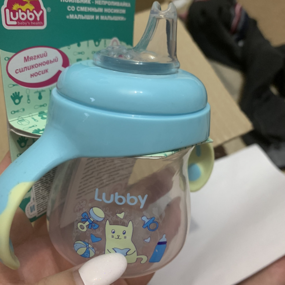 Поильник положили голубого цвета, как и просила. Очень удобно малышу его держать, мягкий носик!