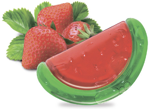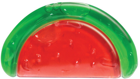 Арбузик большой, на передние, на средние зубчики. Имеет ужасный запах, помыла мылом, положила в холодильник, в итоге запах не ушёл. Ребёнок попробовал и бросил, валяется. Пустая трата денег.