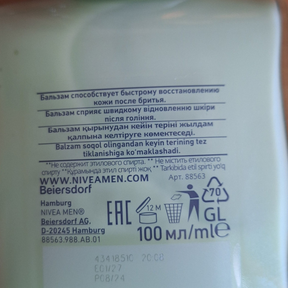 NIVEA Бальзам после бритья восстанавливающий-20% +37 хорошего качества мягко действует ненавязчивый запах