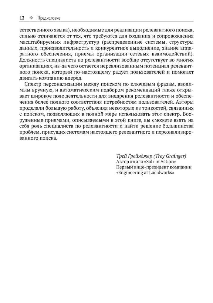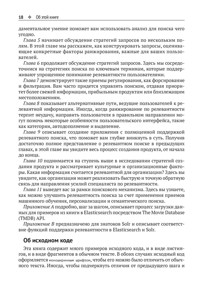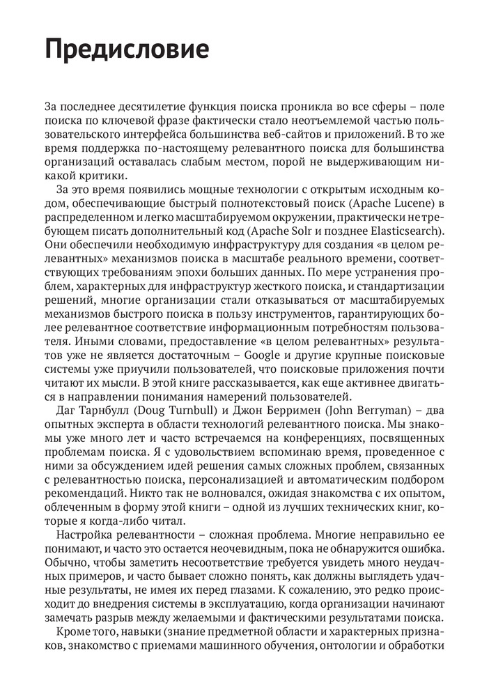 💳 Оплатить за товар можно при получении 🇰🇿 Есть бесплатная доставка по Казахстану от 1 дня 🎁 Копите бонусы с каждой покупки Пользователи привыкли почти мгновенно получать релевантные результаты от поисковых приложений. Чтобы создавать такие приложения, вы должны овладеть механизмами поиска. Однако для многих разработчиков тема ранжирования релевантности остается почти мистической. Данная книга срывает покров тайны с этой темы и демонстрирует, что механизм поиска — это всего лишь программируемый движок. На примере Elasticsearch и Solr вы научитесь выражать свои бизнес-правила ранжирования с использованием этого движка. Вы узнаете, как программировать релевантность, как подключить вторичные источники данных, классификаторы, организовать анализ текста и обеспечить персонализацию поиска. |