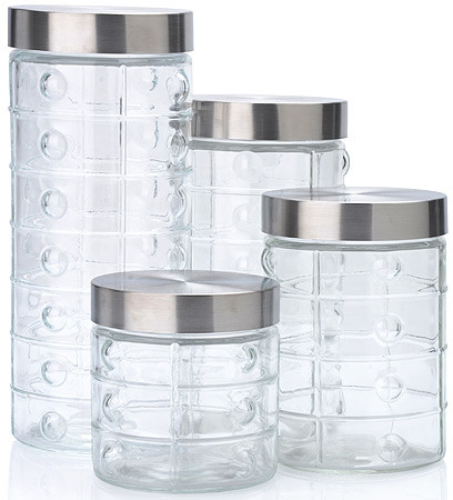 Mayer & Boch Набор банок для сыпучих продуктов (750/1,15/1,6/2,1 л, 4 шт)В данный момент этот товар отсутствует в продаже. Возможно, у нас найдется аналогичный или похожий товар здесь. Набор MAYER&BOCH из 4-х банок для сыпучих продуктов выполнен из высококачественного стекла. Банки предназначены для хранения различных сыпучих продуктов: сахара, кофе, муки, соли, круп, макаронных изделий и т.п. |
