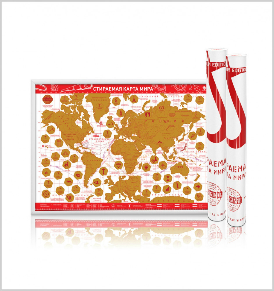 Умный подарок Скретч-карта мира «Present Edition» (42×59 см, красная/цилиндрический тубус) стираемый слой-25% +68