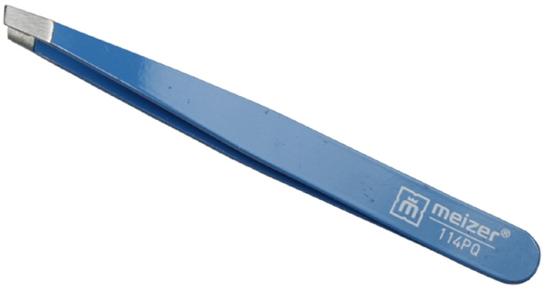 Отличный пинцет, удобная форма, цепляет волоски хорошо, заточка гладкая, зазубрин нет. Длина 9,5 см; ширина самых кончиков - 3-3,5 мм.
