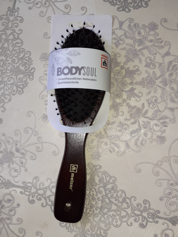 Официально могу сказать, что это - моя любимая расческа :) Щетинки жестковаты, так что, помимо расчески, очень крутой массажер. Ручка выполнена из дерева с покрытием, так что, кто за экологически чистые материалы - вам понравится!